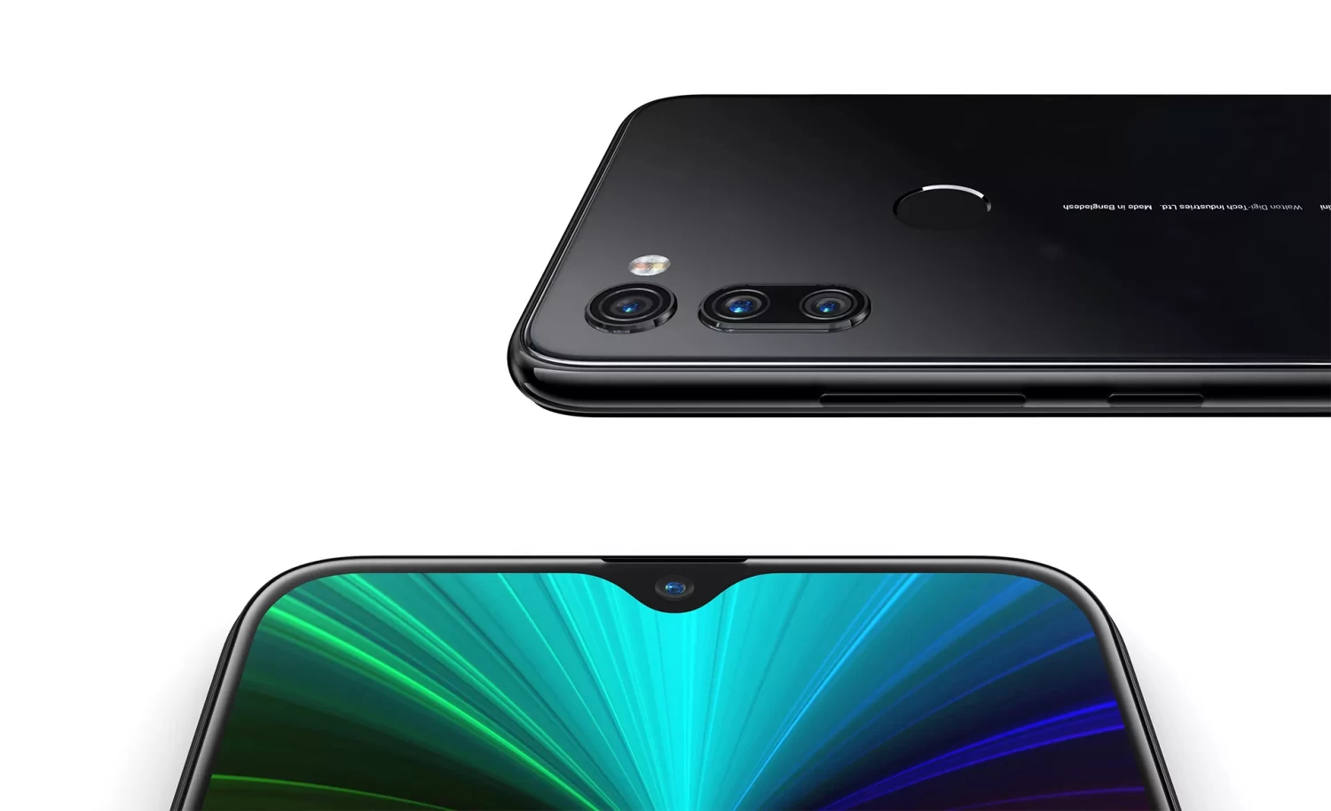 All Glass design Sony Al Triple Camera (12MP+8MP+5MP) 13MP Selfie Camera with Portrait Mode 6.3" FHD+ IPS Full lamination Fingerprint Sensor Face Unlock Security Slider RGB Notification LED Dark Theme Supports 18W Fast Charging Gestures Prayer Time.